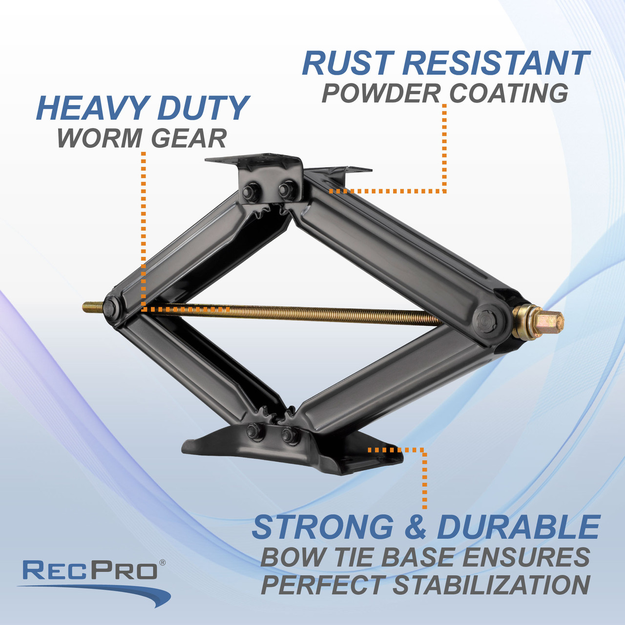 DURABLE CONSTRUCTION — Engineered for resilience, our scissor jacks boast a robust build with a black, powder-coated finish and a rust-inhibitive surface. These features ensure it can endure the rigors of RV travel, providing a long-lasting solution that stands up to wear and tear