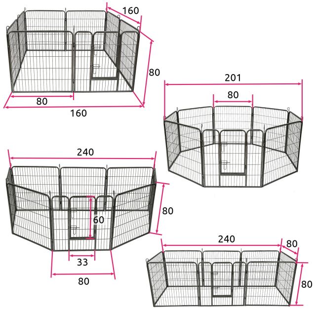 Panel size: 78x80cm, 8 panels, gate 33x60cm, 1.5×1.5cm square tube