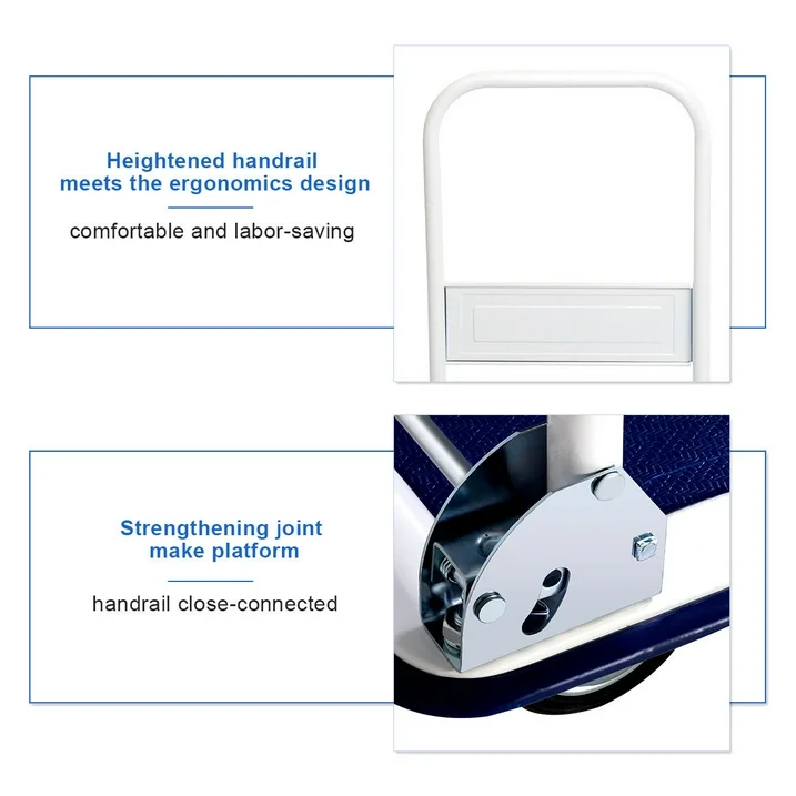 [DURABLE & RELIABLE]: Crafted with a heavy-duty frame, the platform hand truck is built to last. Constructed from robust materials, this push cart is designed to withstand rigorous use and resist wear and tear. It promises long-lasting reliability, enhancing your operational efficiency.